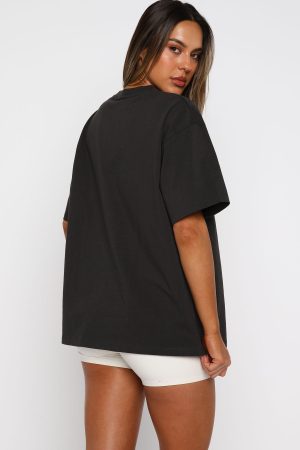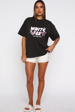 Merry moments start with the perfect tee. The Christmas Feeling Oversized Tee in Charcoal is tailored with a classic crew neckline. relaxed slouched shoulders. breezy short sleeves and a relaxed silhouette. Finished off with a White Fox puff-print text at the front. paired with happy holidays edition printed text for a standout statement. Style with a mini skirt and layered gold jewellery for the cutest xmas fit.
