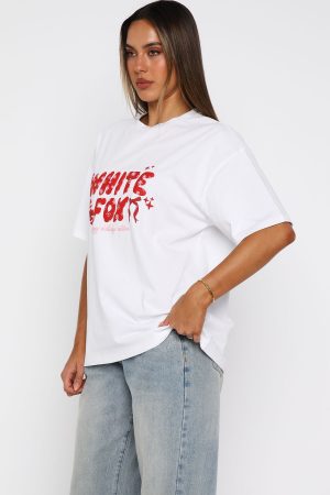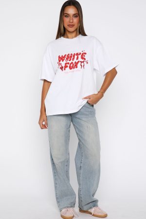 Merry moments start with the perfect tee. The Christmas Feeling Oversized Tee in White is tailored with a classic crew neckline. relaxed slouched shoulders. breezy short sleeves and a relaxed silhouette. Finished off with a White Fox puff-print text at the front. paired with happy holidays edition printed text for a standout statement. Style with lounge shorts. slippers and festive socks.