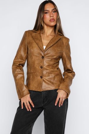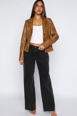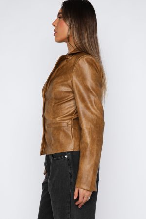 Introducing your go-to jacket for turning heads while staying comfy and cool. The Classic Babe Pu Jacket in Tan features a collar neckline. statement button closure down centre front. faux pockets side front. long sleeve with split at cuff and lined. Whether you’re out with friends or on a casual date. pair with White Fox denim jeans and a casual top!
