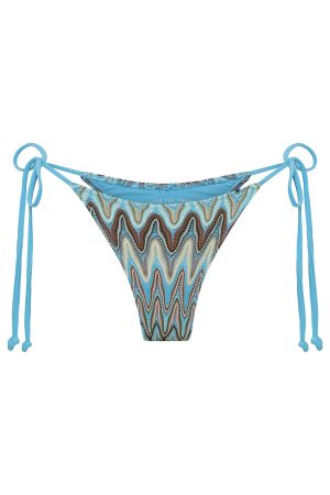 Suit up in the Clio Bottoms in Ocean Waves. Featuring thin self‑tie hip straps and. fully lined fabric. The cheeky thong coverage is accented by striking gold‑tone hardware at the centre back and delicate lace overlay. Style with the matching bikini top and sunnies for an effortlessly radiant look.