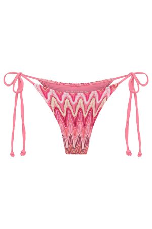 Suit up in the Clio Bottoms in Sunrise Waves. Featuring thin self‑tie hip straps and. fully lined fabric. The cheeky thong coverage is accented by striking gold‑tone hardware at the centre back and delicate lace overlay. Style with the matching bikini top and sunnies for an effortlessly radiant look.