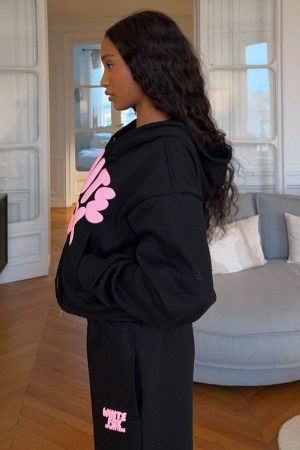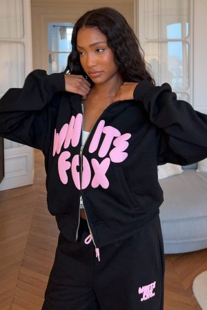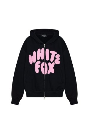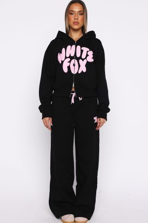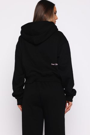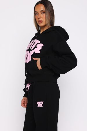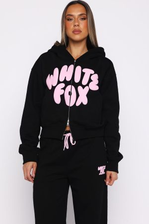 We followed our hearts. and it led us to the Club 14 Allie Boxy Zip Front Hoodie in Black! Features a relaxed hood. boxy fit. long sleeves. front pocket. ribbed cuffs and hem band. and a double-ended centre-front zipper. Finished with puff print White Fox text centre front. paired with subtle cursive puff print Sports Club text side back. Complete the look with the matching Club 14 Allie Wide Leg Sweatpants.