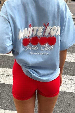 Wear it on repeat! The Club 14 Cassie Bike Shorts Red features a thick. supportive waistband. a sleek fitted silhouette. an unlined design in high-stretch fabric. and standout White Fox Sport puff-print lettering at the front side. Style with the Club 14 Cassie Oversized Tee for a fun sporty vibe.
