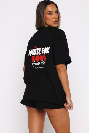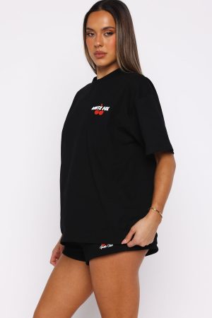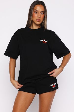 Today’s uniform! The Club 14 Cassie Oversized Tee Black features a classic crew neckline. relaxed slouched shoulders. breezy short sleeves and oversized silhouette. Finished off with a White Fox puff-print text at the front and back. layered over a cherry graphic for a standout statement. Pair with the matching Club 14 Cassie Wide Leg Sweatpants or Club 14 Cassie Lounge Shorts.