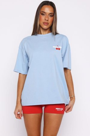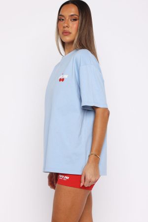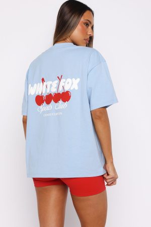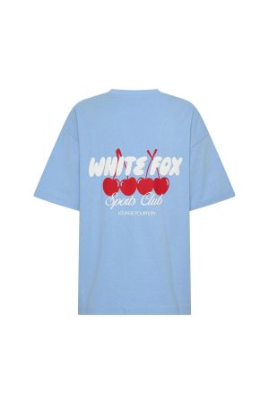 Today’s uniform! The Club 14 Cassie Oversized Tee Blue features a classic crew neckline. relaxed slouched shoulders. breezy short sleeves and oversized silhouette. Finished off with a White Fox puff-print text at the front and back. layered over a cherry graphic for a standout statement. Pair with the matching Club 14 Cassie Wide Leg Sweatpants for the perfect cosy look.