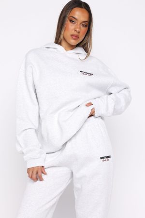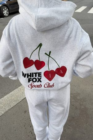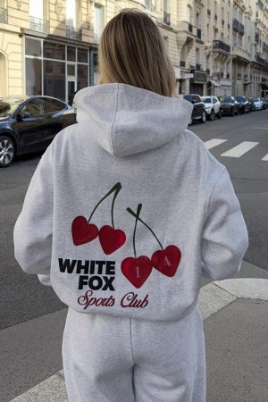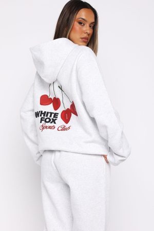 For cozy nights and crisp days. the Club 14 Izzy Oversized Hoodie in Grey Marle is your go-to. Designed with a relaxed hood. slouched shoulders and ribbed hems which round out an oversized silhouette. Featuring long sleeves. a roomy front pocket. and an unlined fleece interior. this hoodie delivers a cozy feel. Finished with puff print White Fox text side front and printed cherry graphic paired with puff print White Fox text centre back. Style with the matching Club 14 Izzy Sweatpants for the perfect lounge set.
