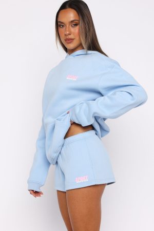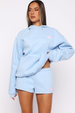 Unwind in style. The Club 14 Peyton Lounge Shorts Blue is designed with a thin elasticated waistband featuring an internal drawstring tie. side hip pockets. and a relaxed silhouette. The White Fox Sport puff print text at the side adds a signature touch. while the unlined fleece interior ensures a cozy feel. Pair with the matching Club 14 Peyton Oversized Hoodie for a colourful and cute look.