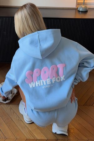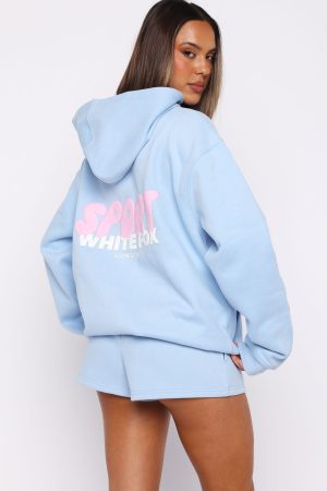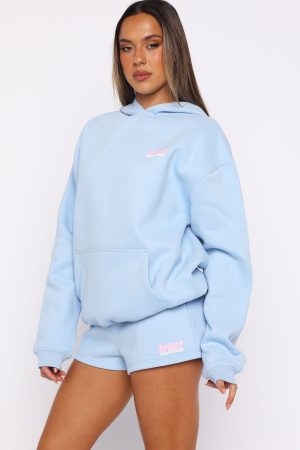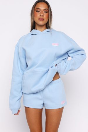 The joy of being in loungewear! The Club 14 Peyton Oversized Hoodie Blue is designed with a relaxed hood. slouched shoulders and ribbed hems. which round out an oversized silhouette. Featuring long sleeves. a roomy front pocket. and an unlined fleece interior. this hoodie delivers a cozy feel. Finished with puff print White Fox text side front and centre back. Style with the matching Club 14 Peyton Lounge Shorts for a comfortable and cute look we love.