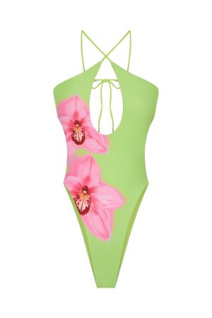 We can’t wait to see you in this Colombia One Piece in Lime Breeze. Featuring a cross over neck detail. open back with tie. open chest design. cheeky cut design and cut out sides. We love this worn as swimwear or styled as a bodysuit.