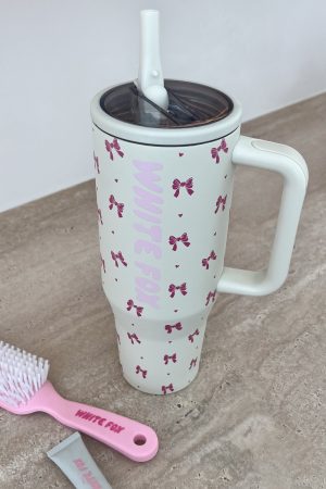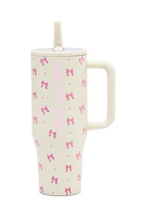The Colson Drink Bottle 1.2 Litre Cream Bows features a screw-off lid with a flip straw. oversized handle. and cupholder-compatible design. Finished with White Fox text down the side and a playful bow print. it’s the ultimate xmas essential.