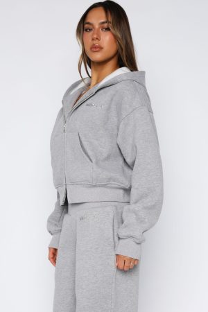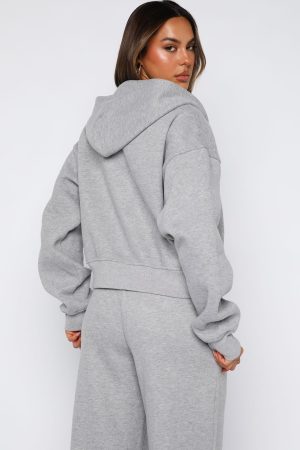 Come A Long Way Boxy Zip Front Hoodie Grey MarleCome A Long Way Boxy Zip Front Hoodie Grey Marle
