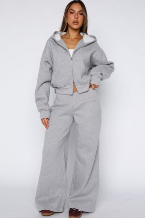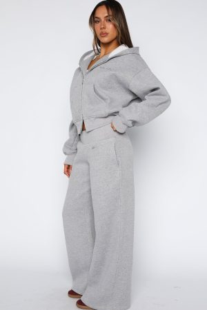 Slip into Come A Long Way Wide Leg Sweatpants in Grey Marle and redefine cosy-chic. These effortless sweats feature a thick elasticated waistband and stitched White Fox text along the side front. The flowing wide-leg cut offers laid-back comfort. while unlined ensures loungy softness all day. Pair with the Come A Long Way Boxy Zip Front Hoodie in Grey Marle for matching ease-meets-style energy.