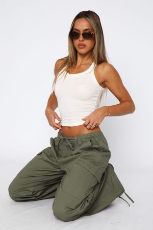 Keep your basic style elevated in the Commodity Parachute Pants in Khaki. Featuring an oversized look. thick elasticated waistband with drawstring closure. 4 front pockets. unlined. adjustable strap on ankles and a wide leg design. We love these teamed with a white tank and your favourite sneakers for an off duty vibe!