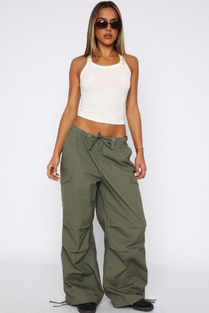 Keep your basic style elevated in the Commodity Parachute Pants in Khaki. Featuring an oversized look. thick elasticated waistband with drawstring closure. 4 front pockets. unlined. adjustable strap on ankles and a wide leg design. We love these teamed with a white tank and your favourite sneakers for an off duty vibe!