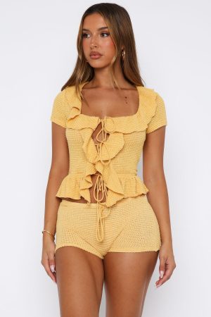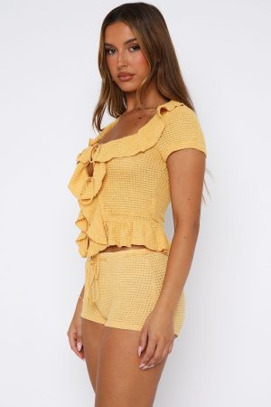 You can’t go wrong with the Cool It Crochet Shorts in Mango! Features external drawstring detailing at waist. booty length and stretch fabrication for an easy slip on and off. Complete the look with the matching Cool It Crochet Short Sleeve Top Mango for a look we love!