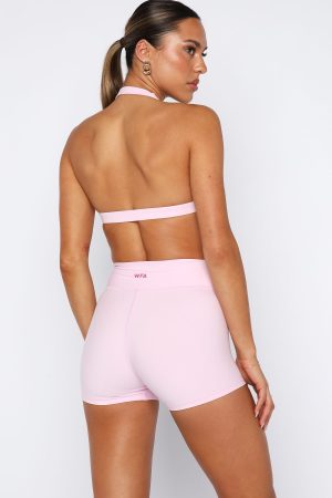 Working out has never looked cuter in the Courage Sports Bra in Marshmallow! Features fixed halter neck strap. v-neckline. elasticated under bust strap. signature WFA initials side front. backless and removable bust cups. Girls it is a must to pair this stun Sport Bra with the matching Stronger High Waisted Shorts 3.