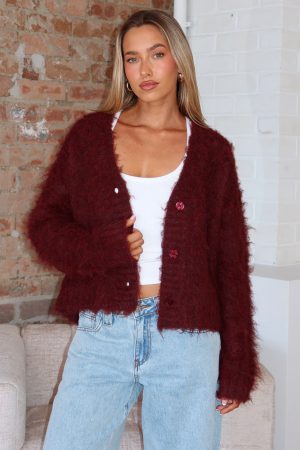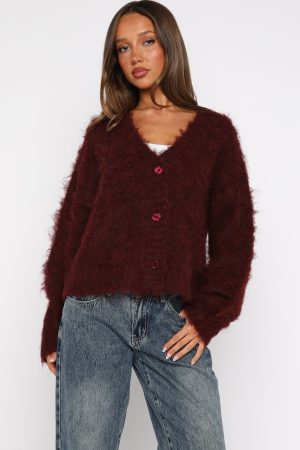 Be the first to review “Cozy Vibes Knit Cardigan Bordeaux”