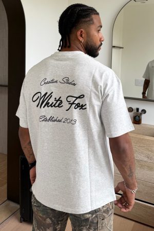 Feel effortlessly cool in the Creative Studios Oversized Tee Grey Marle. designed for you and your partner! Crafted from semi-stretch fabrication this unlined tee features slouched shoulders. classic crew neckline. breezy short sleeves and White Fox printed side front and centre back all on a oversized silhouette. Style with your go-to denim jeans. sandals and sunnies for a chill weekend vibe.