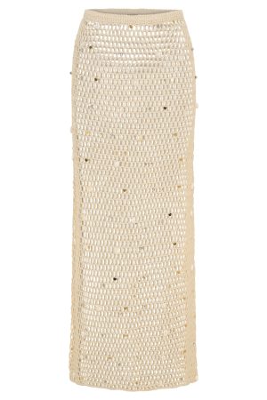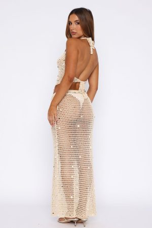 Evaluate your summer wardrobe with the Dance With You Crochet Maxi Skirt in Sand. Features an elasticated waistband. maxi length. and high shine. sheer fabrication with textured shell detailing. To complete the look style with the matching Dance With You Crochet Top in Sand for the ultimate summer fit!