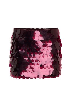Born to stand out. today and every day. The Dancefloor Dreamer Sequin Mini Skirt in Plum features a thick elasticated waistband. sheer mesh fabrication adorned with paillette sequins. an invisible side zipper with hook and eye closure. and is fully lined for comfort. Style with a basic tank. kitten heels and layered gold jewellery to let the skirt shine!