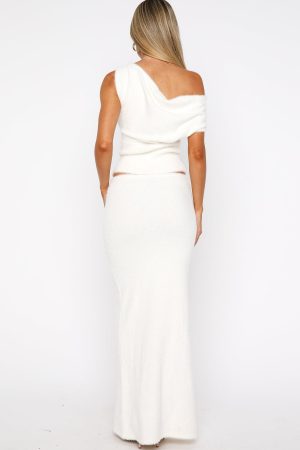 Embrace a monochrome moment with the Dancing At Night Knit Maxi Skirt in Snow. This unlined. figure-skimming piece features a soft. fluffy knit and a thin elastic waistband. offering both comfort and style. Pair it with the matching Dancing At Night Knit Top Snow for a coordinated look that exudes effortless elegance.