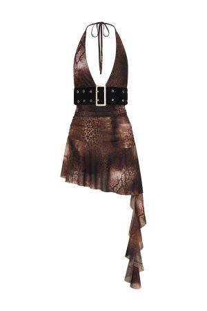 Tags: buystructure:fashion, clothing, collections:coachella-26, colour:brown, discountable, discountable_uk, discountable_us, Division:Fashion, dresses, end-use:day, fabric-type:100-polyester, fabric:chiffon, feed-cl0-newarrivals, feed-cl2-fullpriceau, feed-cl2-fullpriceuk, feed-cl2-fullpriceus, halter, halterneck, length:sleeveless, mini-dresses, New Arrivals, new_arrivals_au, new_arrivals_uk, new_arrivals_us, pattern:animal, print:animal, recently_added, recently_added_2026-02-16, season:summer, size:l, size:m, size:s, size:xl, size:xs, size:xxs, sizeguide:clothes, subcat:mini-dresses, subcategory:Mini Dresses, tone:Solstice Serpent