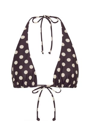 A simplistic but classic bikini set is a must have for any summer holiday! The Danica Bikini Top in Choc/Cream Polka Dot features features a triangle silhouette. flattering halter neckline and self-tie closure at the back. making it as stylish as it is versatile. Pair with the matching Bottoms in Choc/Cream Polka Dot. sunnies and a pouch for a look we love!