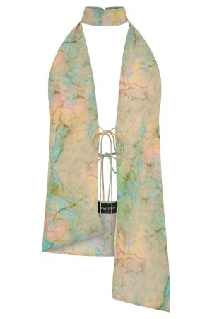 Introducing your newest wishlist must have – welcome the Day Dream Top Seaside Mottle. Features halter neckline. low plunge with self ties centre front. neck scarf detailing backless. button closure on neck. additional self ties on back for support. Complete the look with a simple mini skirt. gold accessories and elevated sandals for a look we are obsessed with.