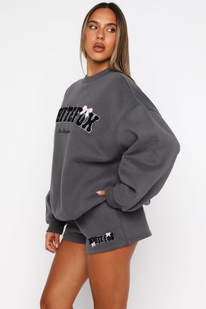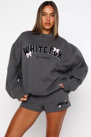 Turn your lowkey lounge moments into style moments with the Daydreamers Madeline Drop Shoulder Sweater Volcanic! Designed with ribbed crew neckline. drop shoulders and ribbed hems which round out an oversized silhouette. Featuring long sleeves. centre front Borg logo design and an unlined fleece interior.