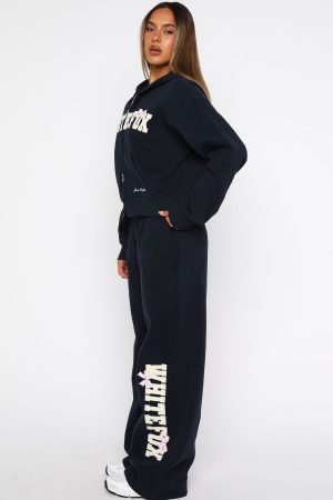 Cute enough for selfies. comfy enough to lounge in! The Daydreamers Madeline Wide Leg Sweatpants in Navy feature a thin. elasticated waistband with internal drawstring. wide leg design. side hip pockets. fleece lining for extra comfort and a Borg logo design on side leg. Team with the matching Daydreamers Madeline Boxy Zip Front Hoodie Navy to score extra comfort points!