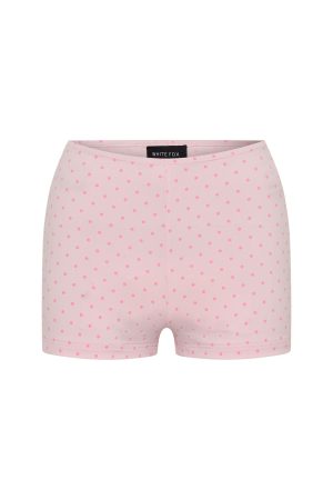 Made to match your strawberry matcha! The Daydreamers Nadia Booty Shorts Soft Pink feature a thin elasticated waistband. unlined material. booty short length. stretch fabric for an easy slip on design and the cutest polka dot print! Pair with the matching tank top for a look we are obsessed with!