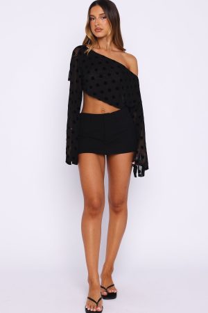 Tags: buystructure:fashion, clothing, colour:black, crop-tops, discountable, discountable_uk, discountable_us, Division:Fashion, end-use:day, fabric-type:95-polyester-5-elastane, feed-cl0-newarrivals, feed-cl2-fullpriceau, feed-cl2-fullpriceuk, feed-cl2-fullpriceus, feed-cl4-spring, feed-cl4-summer, Going Out Tops, length:long-sleeve, New Arrivals, new_arrivals_au, new_arrivals_uk, new_arrivals_us, off the shoulder, pattern:polka-dot, print:polka-dot, recently_added_2025-12-12, SALE40, season:transeasonal, size:l, size:m, size:s, size:xl, size:xs, size:xxs, sizeguide:clothes, subcat:fashion-tops, subcategory:Crop Tops, subcategory:Going Out Tops, tone:Black Polka Dot, tops