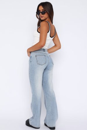 Look and feel your best with the Desire Mid Rise Straight Leg Jeans Light Blue Wash! The ultimate styling piece for any season. These mid-rise jeans feature zip and button closure. belt loops. frayed hem. straight leg design and 5 pocket design. We love this paired with a cute crop and sneakers for the ultimate IT girl fit!