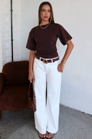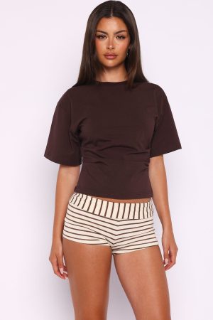 Tags: buystructure:fashion, cinched waist, clothing, colour:brown, description_cleaned_au, discountable, discountable_uk, discountable_us, Division:Basics, end-use:day, fabric-type:95-cotton-5-elastane, feed-cl0-newarrivals, feed-cl2-fullpriceau, feed-cl2-fullpriceuk, feed-cl2-fullpriceus, feed-cl4-spring, feed-cl4-summer, han_new, heth_check_new, length:short-sleeve, low_availability_au, New Arrivals, new_arrivals_au, new_arrivals_uk, new_arrivals_us, new_han, pattern:plain, recently_added_2026-01-12, SALE40, season:transeasonal, size:l, size:m, size:s, size:xl, size:xs, size:xxs, sizeguide:clothes, subcat:basic-tops, subcategory:T Shirts, t-shirts-&-tees, tees, tone:Chocolate, tops