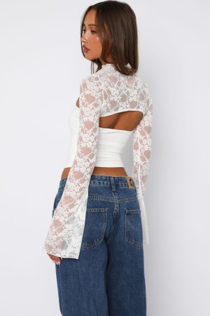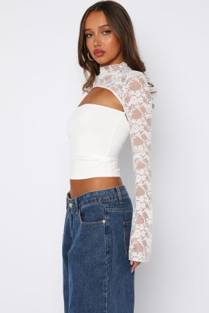 Forever in awe! The Devoted Love Long Sleeve Top in White features a lace long sleeve overlay and attached strapless top with stretch fabrication for a figure hugging fit. Let the top do all the talking and pair with White Fox denim jeans and heels for a look we love!