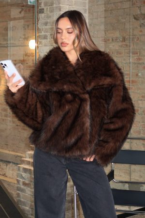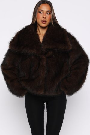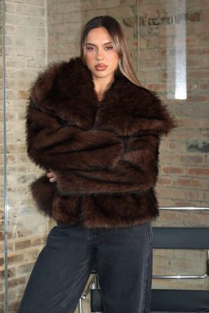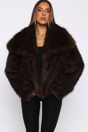 Elevate your evening ensemble with the Dirty Martini Faux Fur Jacket in Chocolate. This jacket features a wide collar. slouched shoulders. and long sleeves. exuding a relaxed yet sophisticated silhouette. Crafted from plush faux fur and fully lined. it offers both warmth and style. Pair with your go-to denim jeans and boots for a chic look.