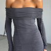 Meet the Disturbing The Peace Long Sleeve Mini Dress in Cream the perfect blend of soft and elegant. It features a subtle off‑shoulder neckline and flared long sleeves that add drama. while the ruched drawstring sides sculpt a figure‑hugging silhouette. Fully lined and cut from high‑stretch fabric. it includes side splits at the hem and a delicate soft floral print to keep things romantic. Style with with heels and simple gold jewellery to have all eyes on you.