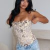 A moment for the Don’t Be Indecisive Strapless Bustier in Black! It features a sleek strapless neckline complemented by structured bodice boning for a sculpted silhouette. Luxurious velvet floral detailing adds romantic texture. while full lining ensures both comfort and confidence. An invisible back zipper and discreet hook-and-eye closure deliver clean. seamless styling. Pair with your fav denim jeans. kitten heels and layered gold jewellery to turn all heads.
