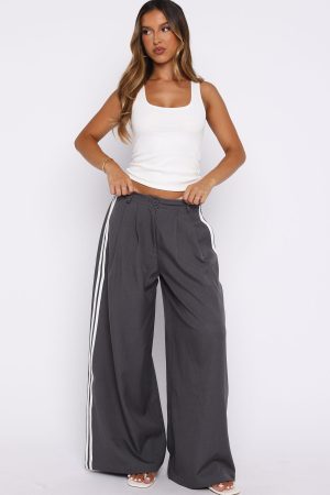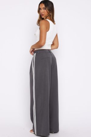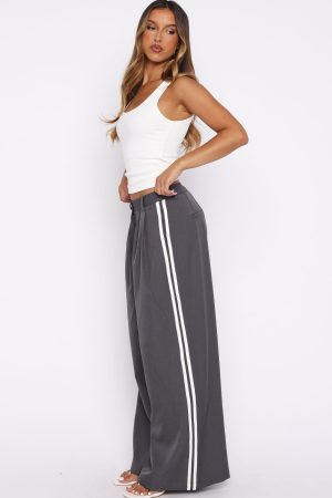 Bring a fresh look to your winter wardrobe with the Don’t Believe It Pants in Charcoal features thick waistband with button and zipper closure centre front. belt loops. side pockets and faux back pockets and wide leg design with double stripe detailing down side. For a laid back vibe pair with a basic tank. sunnies and flats.