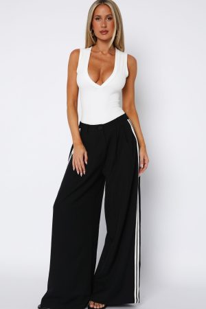Bring a fresh look to your winter wardrobe with the Don’t Believe It Pants in Navy features thick waistband with button and zipper closure centre front. belt loops. side pockets and faux back pockets and wide leg design with double stripe detailing down side. For a laid back vibe pair with a basic tank. sunnies and flats.