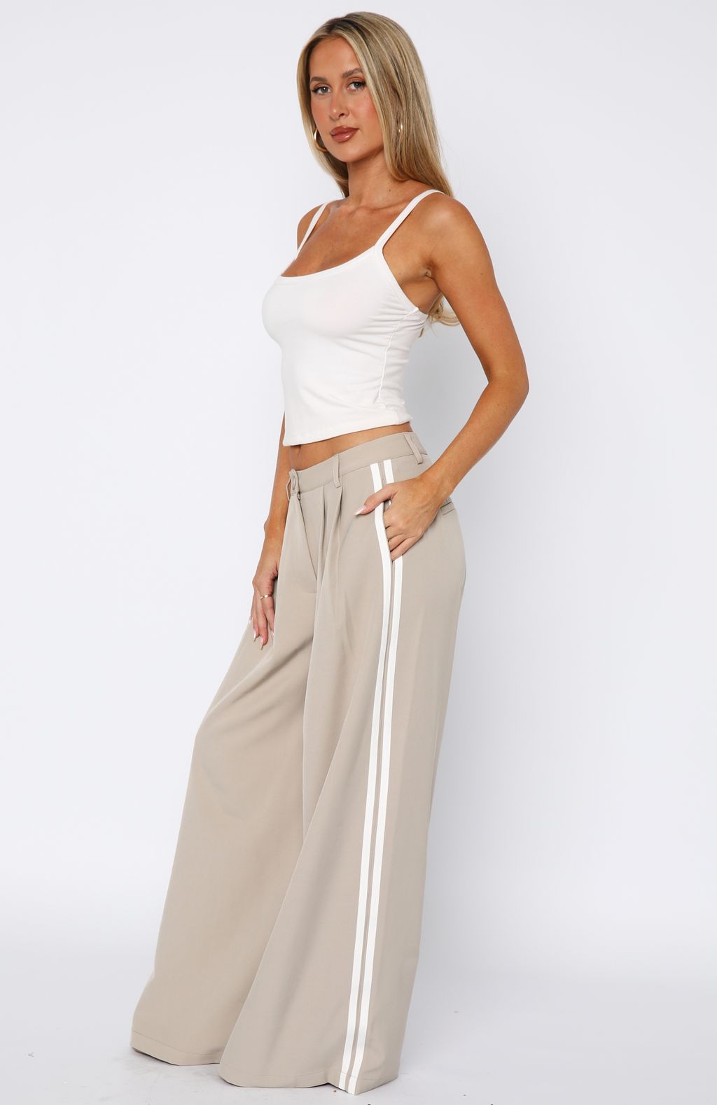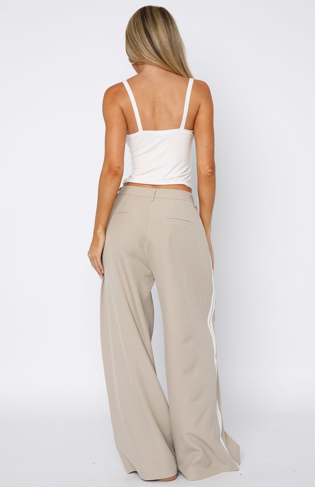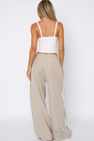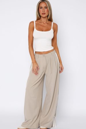 Bring a fresh look to your winter wardrobe with the Don’t Believe It Pants in Sand features thick waistband with button and zipper closure centre front. belt loops. side pockets and faux back pockets and wide leg design with double stripe detailing down side. For a laid back vibe pair with a basic long sleeve. sunnies and sneakers.