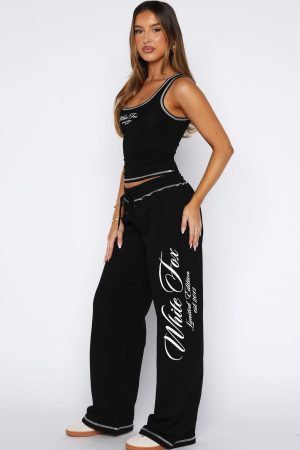 Boss girl energy in the Don’t Need Anyone Track Pants in Black! Features a thick elasticated waistband with external drawstring tied centre front. cursive White Fox text on leg side front. wide leg design and contrast colour hemline stitching. Pair with the matching Don’t Need Anyone Tank Top Black.