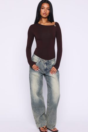 SKU: double-down-long-sleeve-bodysuit-dark-chocolate-33542264