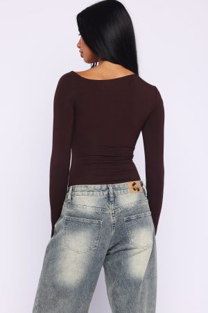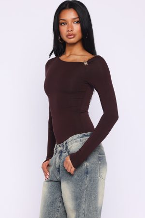 Tags: buystructure:fashion, clothing, colour:brown, description_cleaned_au, discountable, discountable_uk, discountable_us, Division:Fashion, end-use:day, fabric-type:95-modal-5-elastane, feed-cl0-newarrivals, feed-cl2-fullpriceau, feed-cl2-fullpriceuk, feed-cl2-fullpriceus, feed-cl4-autumn, feed-cl4-winter, length:long-sleeve, long-sleeve-tops, low_availability_au, New Arrivals, new_arrivals_au, new_arrivals_uk, new_arrivals_us, pattern:plain, recently_added_2025-12-09, restocked_us, SALE40, season:winter, size:l, size:m, size:s, size:xl, size:xs, size:xxs, sizeguide:clothes, subcat:fashion-tops, subcategory:Bodysuits, subcategory:Long Sleeve Tops, tone:Dark Chocolate, tops