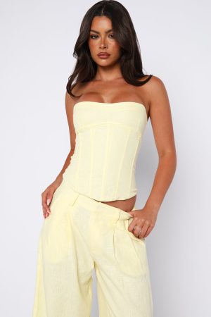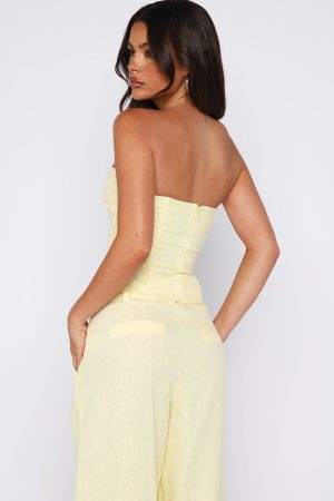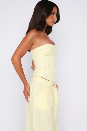 Tags: bustiers, bustiers-&-corsets, buystructure:fashion, clothing, collections:au-summer-jan-26, colour:yellow, description_cleaned_au, discountable, discountable_uk, discountable_us, Division:Fashion, end-use:day, fabric-type:100-linen, feed-cl2-fullpriceau, feed-cl2-fullpriceuk, feed-cl2-fullpriceus, feed-cl4-spring, feed-cl4-summer, length:strapless, low_availability_au, matching-set:yes, New Arrivals, new_arrivals_uk, new_arrivals_us, out-of-stock, pants-sets, pattern:plain, recently_added_2026-01-05, SALE40, season:summer, set-mix:top-pant, sets, size:l, size:m, size:s, size:xl, size:xs, size:xxs, sizeguide:clothes, subcat:bustiers, subcategory:Bustiers, subcategory:Sets, tone:Lemon, tops, two-piece-sets