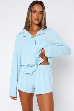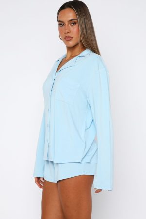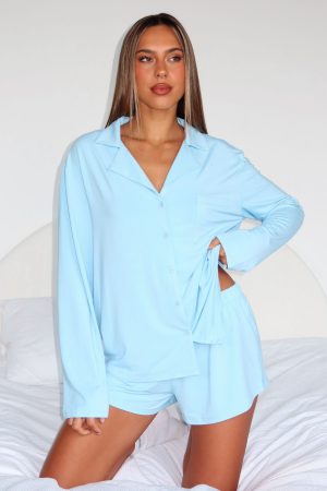 Get cute and cosy in the Dreamscape Long Sleeve Pyjama Set in Baby Blue. Top features a collar neckline. long sleeve and button closure down centre front. Bottoms features a thick elasticated waistband and stretch fabrication for an easy slip on and off. Pair with snug boots and enjoy the night binge watching your fav tv shows!