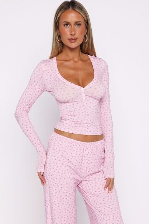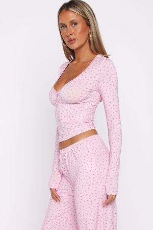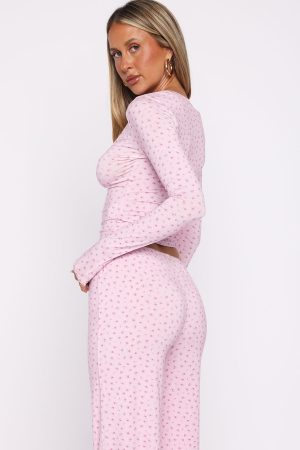 Nighttime routines made cute in the Dreamy Button Up Long Sleeve Pyjama Top in Sugar Blossom. A scoop neckline meets button‑cinched bust detail. while the ultra‑soft. high‑stretch fabric and long sleeves deliver cozy all night. Unlined and finished with a subtle flower design. It’s perfect paired with the matching Dreamy Pyjama Pants or Shorts in Sugar Blossom for the ultimate lounge set.