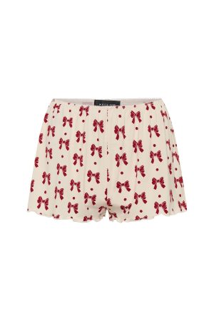 Nighttime routines made cute in the Dreamy Pyjama Shorts in Bow Bliss! These shorts feature a delicate elastic waistband trimmed with scalloped lace. ultra‑soft high‑stretch unlined fabric. a bow print. and a gentle lettuce hem for flirty. feminine movement. Style with the matching Bow Bliss Pyjama Top and slippers for the perfect xmas morning fit.