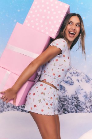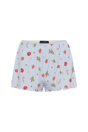 Nighttime routines made cute in the Dreamy Pyjama Shorts in Jingle Joy! These shorts feature a delicate elastic waistband trimmed with scalloped lace. ultra‑soft high‑stretch unlined fabric. a xmas inspired print. and a gentle lettuce hem for flirty. feminine movement. Style with the matching Jingle Joy Pyjama Top and slippers for the perfect xmas morning fit.