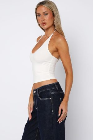 Turn up the fun with the Electric Days Halter Top in White! Features self tie halter straps. round neckline. lined and backless. Complete the look with your fav White Fox denim jeans and a jacket for colder days.